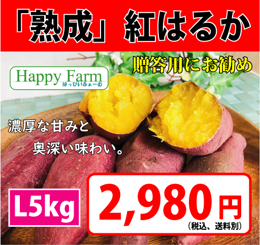 Happy Farmから、極上のさつまいも「熟成」紅はるかをお届けします。
